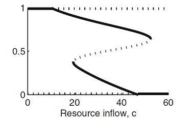 Regime shifts result from a change in the dominant feedbacks. All complex systems contain many feedback loops, but these can typically evolve and combine in only a limited number of ways. Over time, a particular combination of feedbacks will tend to become dominant, leading the system to self-organize into a particular structure and function – or “regime”. However, if the system experiences a large shock (eg a volcano) or persistent directional change (eg accumulation of pollutants, habitat loss) the dominant feedbacks may be overwhelmed or eroded. At some point a critical threshold may be passed where a different set of feedbacks become dominant, and the system experiences a large, often abrupt change in structure and function – or a “regime shift”.